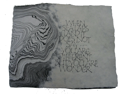 Portfolio Project partnering handmade paper with calligraphy.